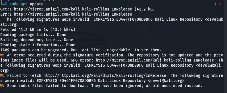 kali linux(칼리 리눅스) iso 파일이 오래됐거나 kali linux에서 apt update 명령어를 오랜만에 사용하면 archive-keyring package가 만료된다고 한다.