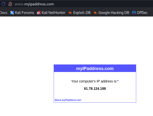그리고 웹 브라우저에서 myipaddress.com에 접속하면 현재 연결된 네트워크의 외부 IP 주소를 확인할 수 있다.
