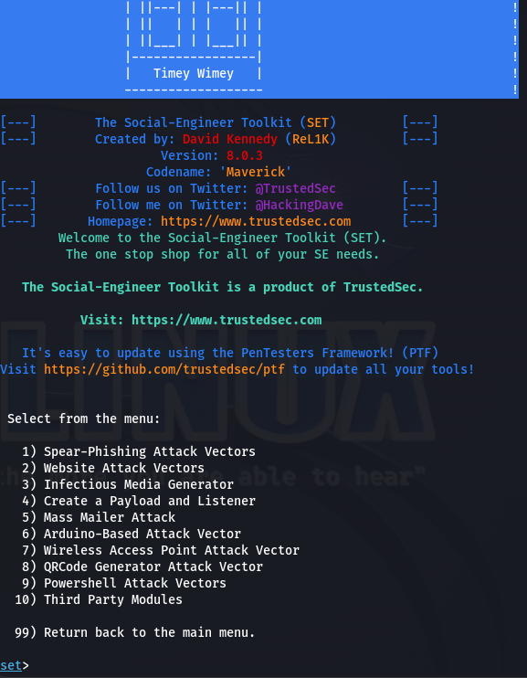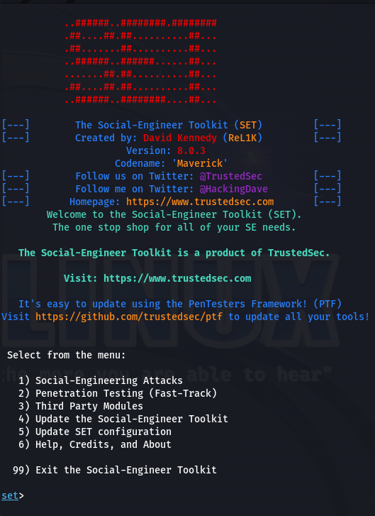 Social Engineering 공격을 하는 데 있어 도움이 되는 도구들이 모아져있는 키트이다.