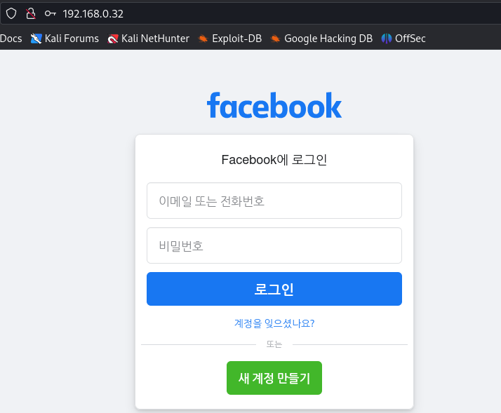타겟이 현재 같은 네트워크 안에 있다면, 위와 같이 피싱 사이트에 접속이 될 것이다.