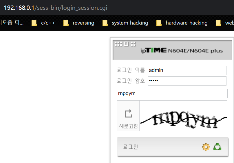 이제 웹 브라우저에서 기본 게이트웨이 주소를 입력하고 들어가면 현재 연결된 공유기의 관리자 설정 창이 나온다.