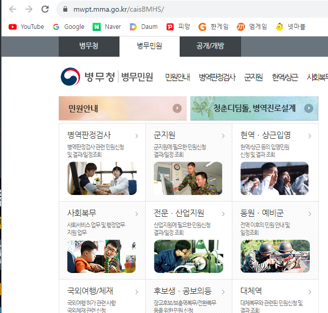첫 번째는 병무청 홈페이지를 통해 타고 타고 들어가서 나라사랑포털에 접속하는 것이고