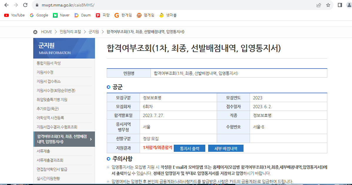 입영 통지서는 캡처하려고 하면 내용이 숨겨지므로 캡처하진 못했지만, 해당 입영통지서를 출력하면 된다.
