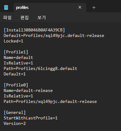 profiles.ini 파일에서 프로필의 백업 경로를 확인할 수 있는데