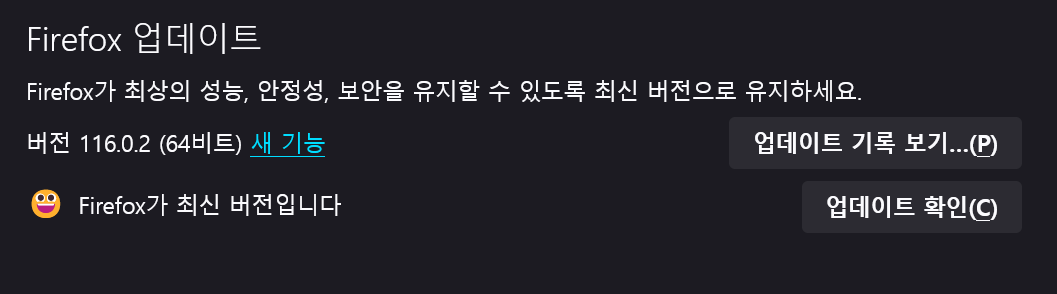 현재 이 글에서 사용되는 firefox의 버전은 116.0.2이다.