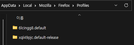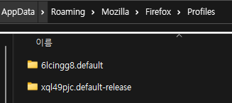 (C:\Users\<사용자 이름>\AppData\Roaming\Mozilla\Firefox)