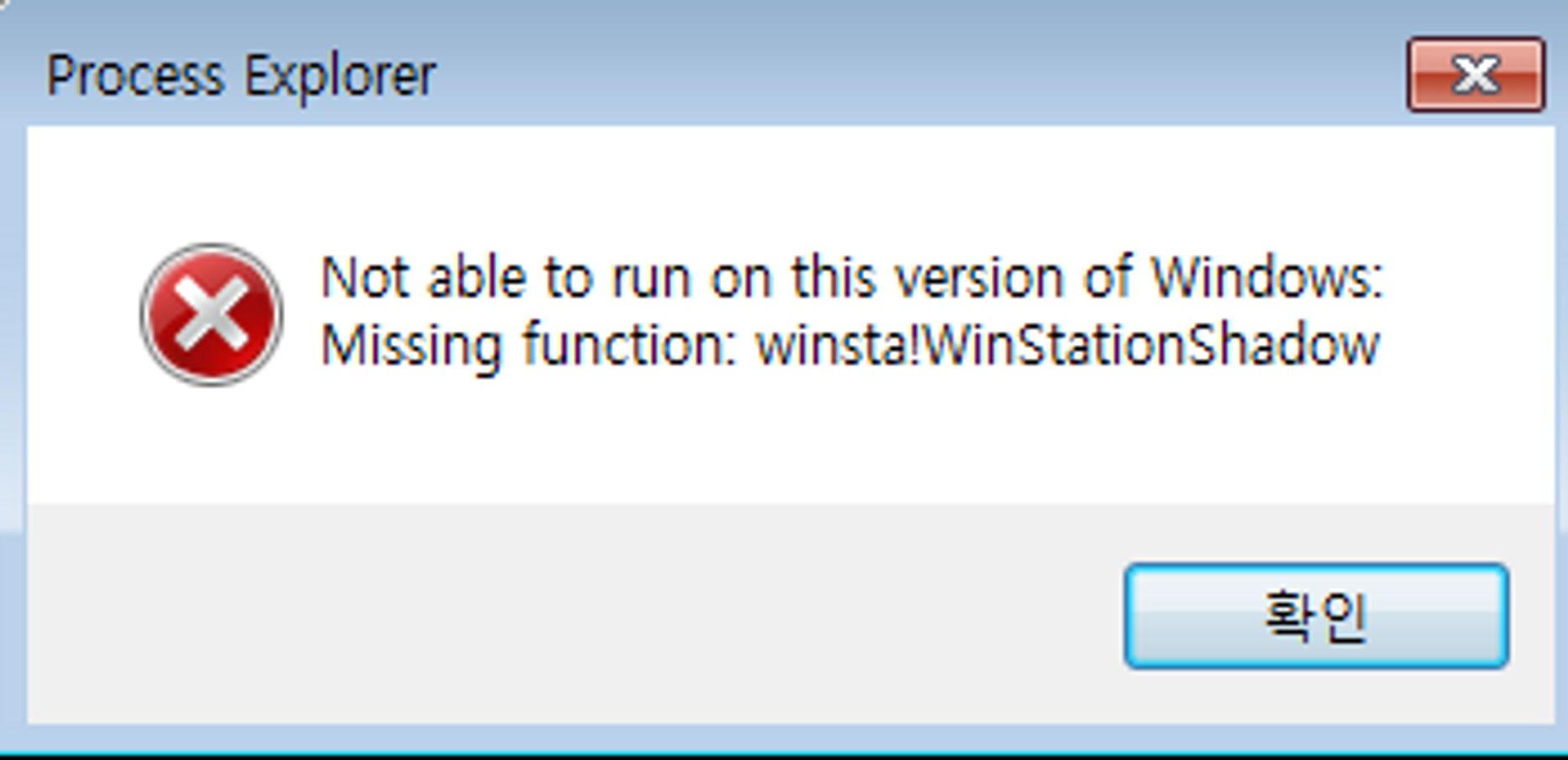 Windows 7 64bit 환경에서 최신 버전의 Process Explorer를 실행하니 위와 같이 winsta.dll 파일에 있는 API 함수를 호출하지 못해 Process Explorer를 실행할 수 없는 것 같다.