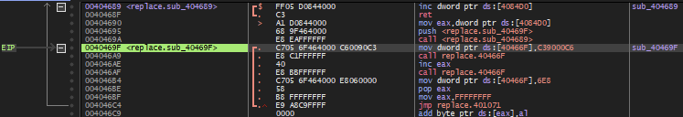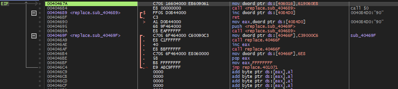 이후 40469F 주소에서는 c39000c6 값을 40466F 주소에 넣고, 40466F 주소를 호출하는데