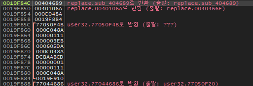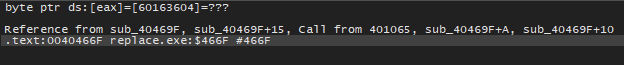 , 40469F 주소를 스택에 넣은 후 404689 주소에 있는 함수를 호출하므로 4048D0 주소의 값은 60163605가 되고