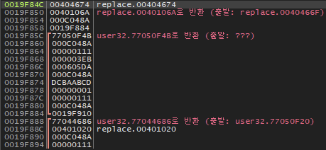 그리고는 404684 주소에서 404689 주소에 있는 함수를 호출한다.
