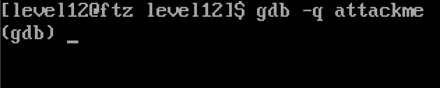 당연하다 위에서 나온 0xbfffe9c0은 tmp 디렉토리 안에 있는 attackme 파일을 실행했을 때의 스택 주소이기 때문에 level12 디렉토리 안에 있는 attackme 파일이 실행될 때의 스택 주소와는 다른 것이다.