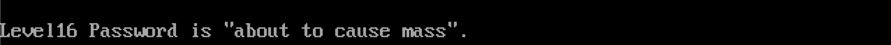 위와 같이 bash shellscript를 이용해 공격할 수 있고, level16의 password는 about to cause mass이다.