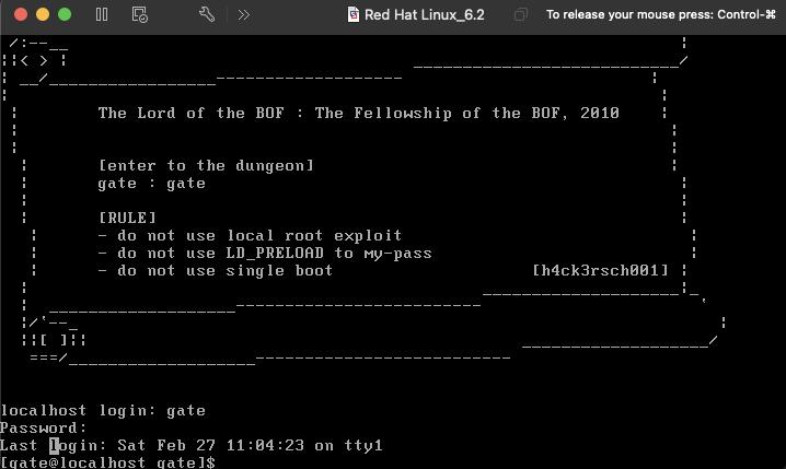 약간의 시간이 걸리고 나서 위와 같이 화면이 보이게 되고, gate로 로그인해서 문제를 풀면 된다.