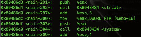 그러면 최종적으로 위와 같은 형태의 명령이 system() 함수의 인자로 넘어가는 것이다.