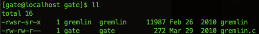 현재 gate 디렉터리에 있는 파일들을 보면 gremlin과 gremlin.c 파일이 있는데, gremlin은 level2 사용자인 gremlin 권한으로 빌드된 파일이다.