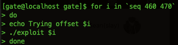 위와 같이 bash shell의 for 루프를 이용하면 offset이 480일 때 &i - 480의 결과에 해당하는 주소를 RET 부분에 덮어씌움으로써 셸을 딸 수 있는 것을 확인할 수 있다.