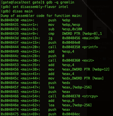 buffer[256]의 공간이 셸코드를 넣고도 충분히 남는 공간이므로 buffer[256]에 셸코드를 넣고, buffer[256]의 시작 주소를 RET 부분에 덮어씌우면 gremlin 프로세스의 main() 함수가 종료될 때 RET 부분이 buffer[256]가 위치했던 공간의 시작 주소로 덮어씌워져 있으므로 해당 주소로 반환되어 실행 흐름이 흘러갈 것이고, 셸코드를 만나 셸이 떨어질 것이다.