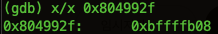 0x80498DB 주소의 힙 공간을 보면 위와 같이 "0x90 + ret의 값" 형태로 되어 있는데, 아직 shellcode를 넣지 않는 지금 0x804992f 주소의 값은 위와 같다.