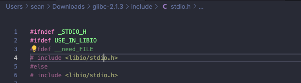 stdin이 "_IO_FILE"이라는 형식으로 선언되어 있는 것을 확인해보기 위해 먼저 glibc-2.1.3/include/stdio.h 파일을 열어보니 libio/stdio.h 파일을 포함하는 것을 볼 수 있다.