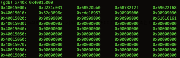 main() 함수가 종료될 때도 0x40015000 주소에는 쉘코드가 남아 있기 때문에 stdin 버퍼를 이용해 0x40015000 주소로 반환하도록 하면 된다.