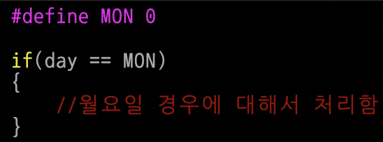 소스 코드의 내용이 복잡해지면 이러한 상수가 어떤 값을 의미하는지 이해하기 어려워지게 된다.