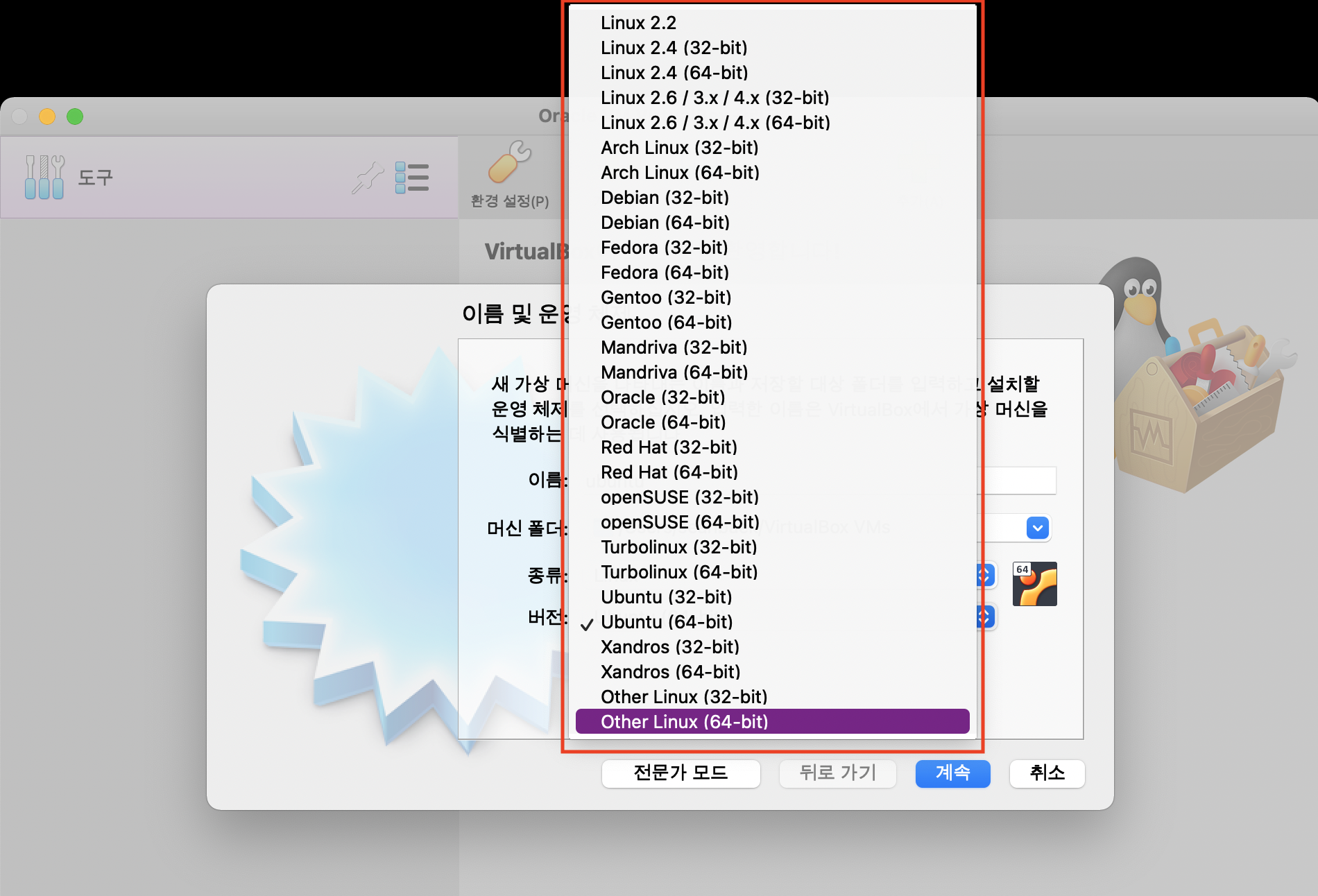 (저희가 생성할 운영 체제는 리눅스 종류입니다.)