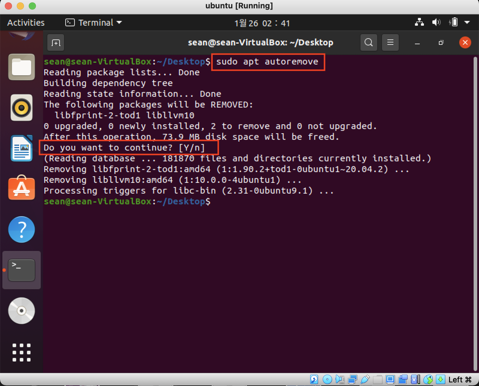 sudo apt autoremove를 입력하여 필요없는 패키지 관련 파일들을 제거해줍니다.