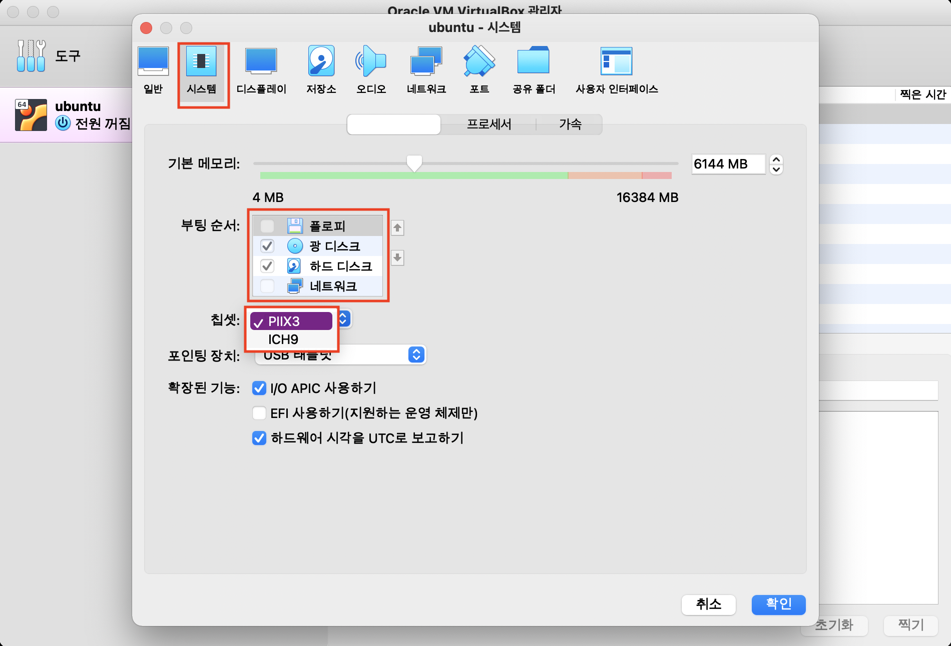 PIIX3와 ICH9는 보통 PIIX3로 선택합니다.