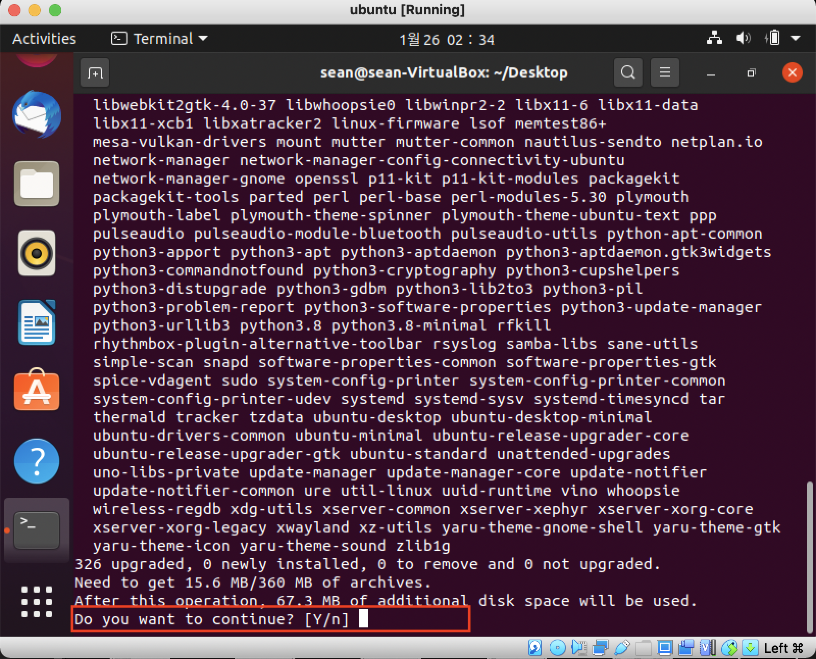다음으로 sudo apt upgrade를 입력하여 패키지들을 최신 버전으로 업그레이드 해줍니다.