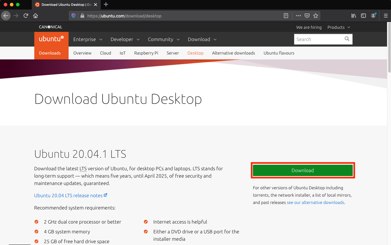 우분투 Desktop iso 파일을 다운로드 할 수 있는 페이지에 들어가면 아래와 같은 화면이 나옵니다.