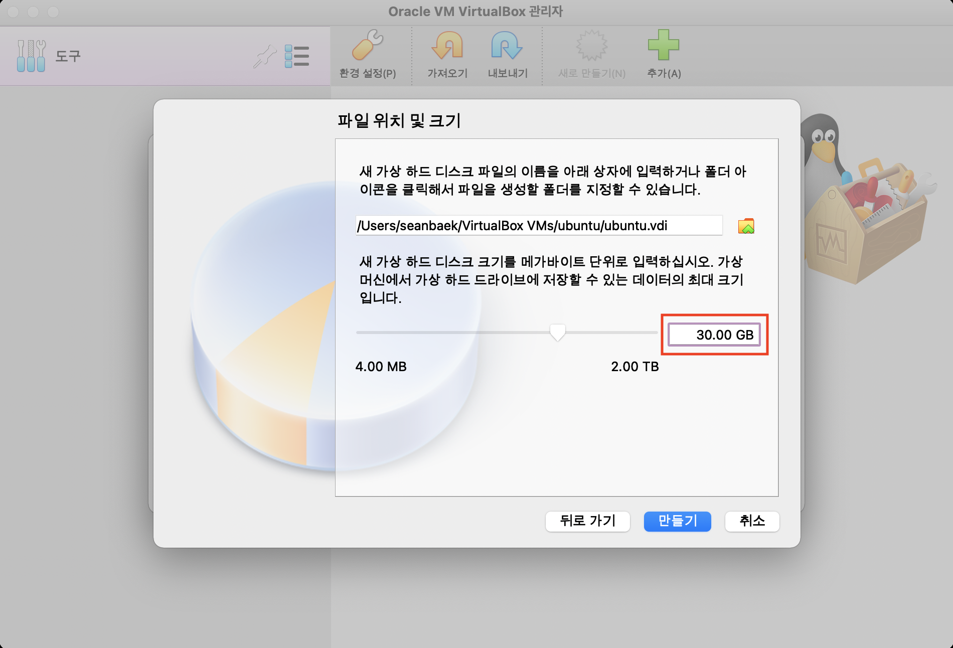 보통 20GB 정도 주면 되지만 부족할 수도 있기 때문에 30GB나 40GB 정도로 줍니다.
