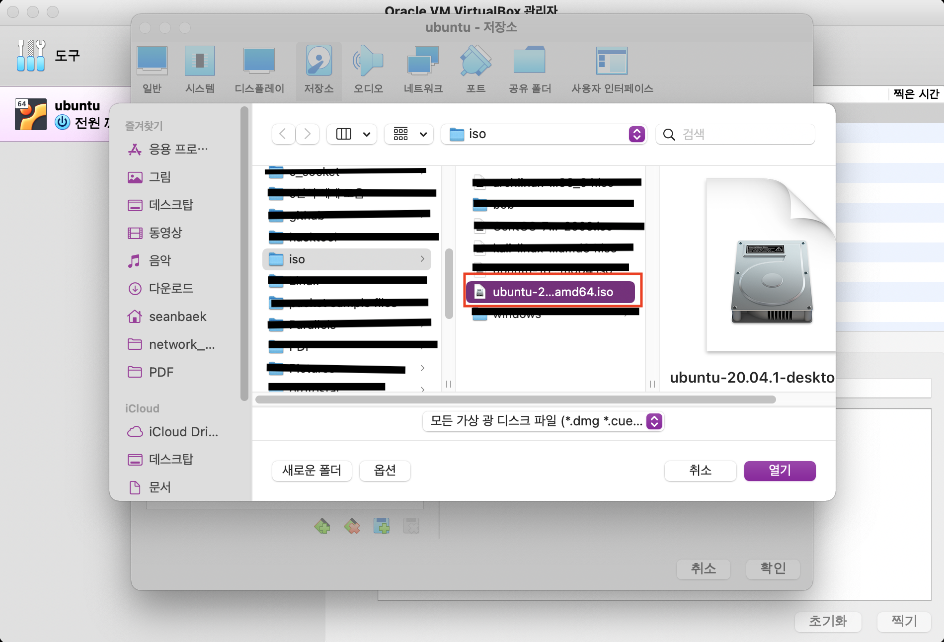 그러고 나서 자신이 다운로드하였던 ubuntu Desktop iso 파일을 선택해줍니다.