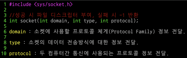 먼저, 다시 한번 socket 함수의 원형 사진을 봐보자.