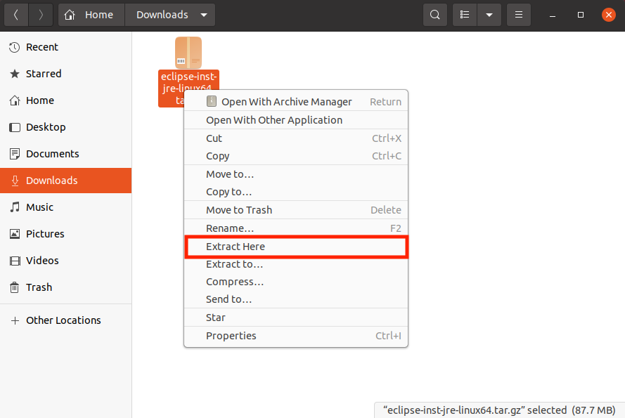tar.gz 파일을 우클릭하면 여러 메뉴들이 뜨는데, Extract Here를 눌러 압축 파일을 풀어줍니다.