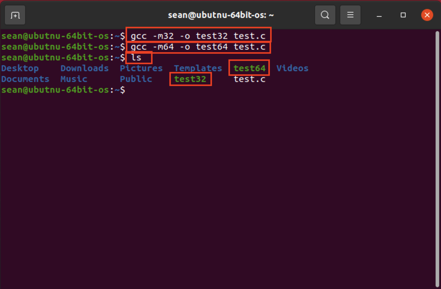 gcc -m64 -o test64 test.c