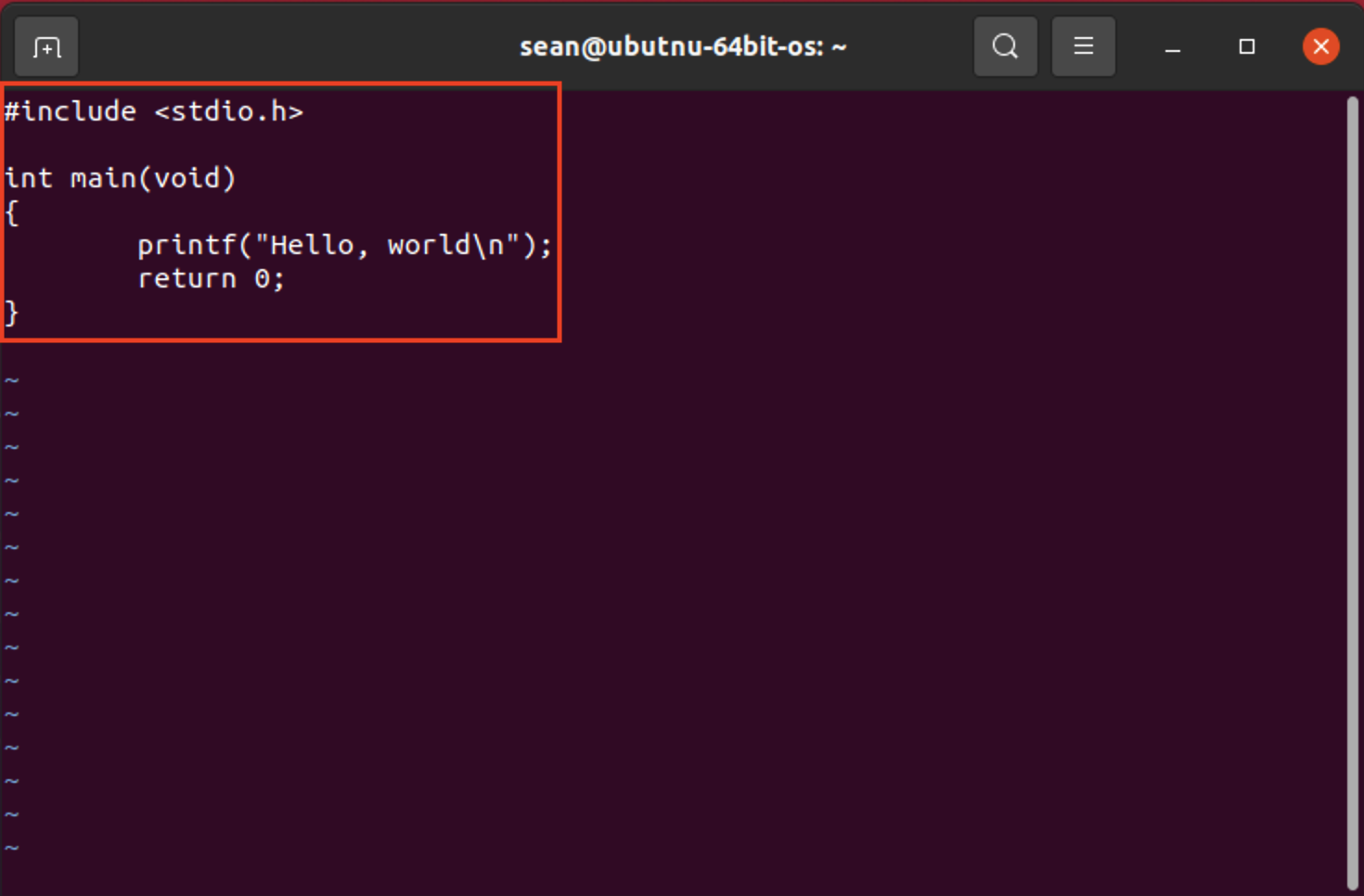 우분투 내에서 gedit나 혹은 vi나 emacs 같은 편집기를 이용하여 아래의 C 코드가 적힌 test.c 파일을 만듭니다.