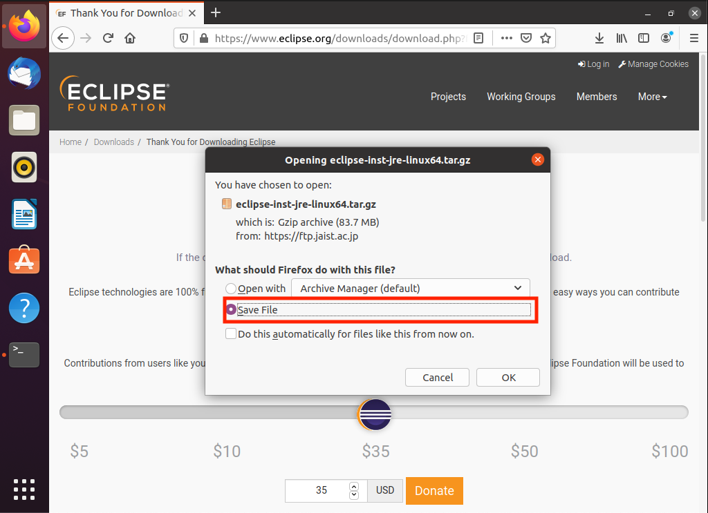 Ubuntu 내의 다운로드 디렉토리에 가면 아래의 사진과 같이 tar.gz 파일이 있을 것입니다.