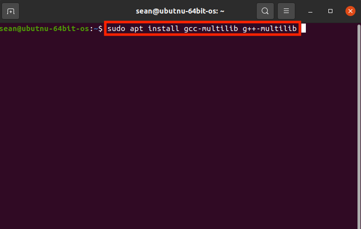 아래의 사진과 같이 sudo apt install gcc-multilib g++-multilib를 입력하여 두 패키지를 설치해줍니다.