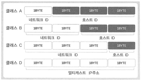 주소의 형태에 따라서 A, B, C, D, E 클래스로 분류된다.