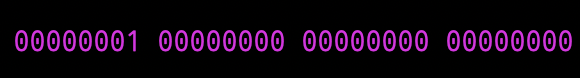 4byte 정수 1을 2진수로 표현하면 아래의 사진과 같다.