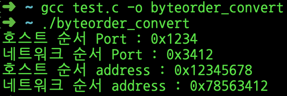바이트 순서가 네트워크 바이트 순서로 바뀐 값이 반환되어 변수에 저장된다.