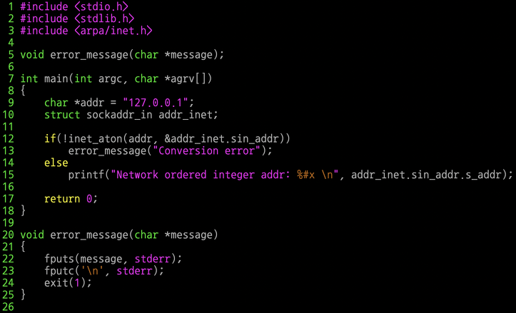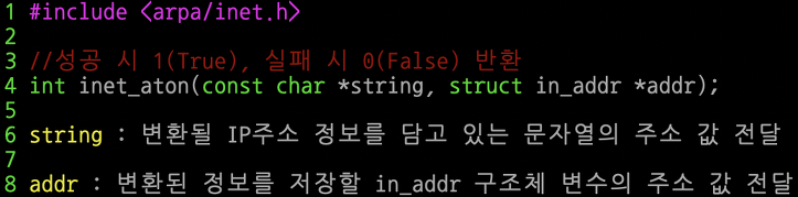아래의 사진은 inet_aton 함수의 예시이다.