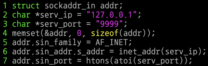 세 번째 인자로 addr의 바이트 크기가 전달되었으니 addr 전체가 0으로 초기화된다.